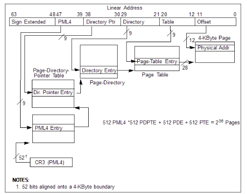 (사실 32비트 주소 변환 테이블에 돌려도 되긴합니다. 맥의 심볼 정보에선 64비트 주소체계더라도 PML4 형식에 맞춰 하위 48비트 주소를 이용하는데, 이 중 상위 16바이트는 사실상 없어도 크게 문제가 없는 듯 합니다. 아무래도 커널 자체가 32비트로 로딩되다보니, 32비트 페이지맵과 64비트 페이지맵 둘다 맵핑 가능하도록 구현된 것 같습니다.)